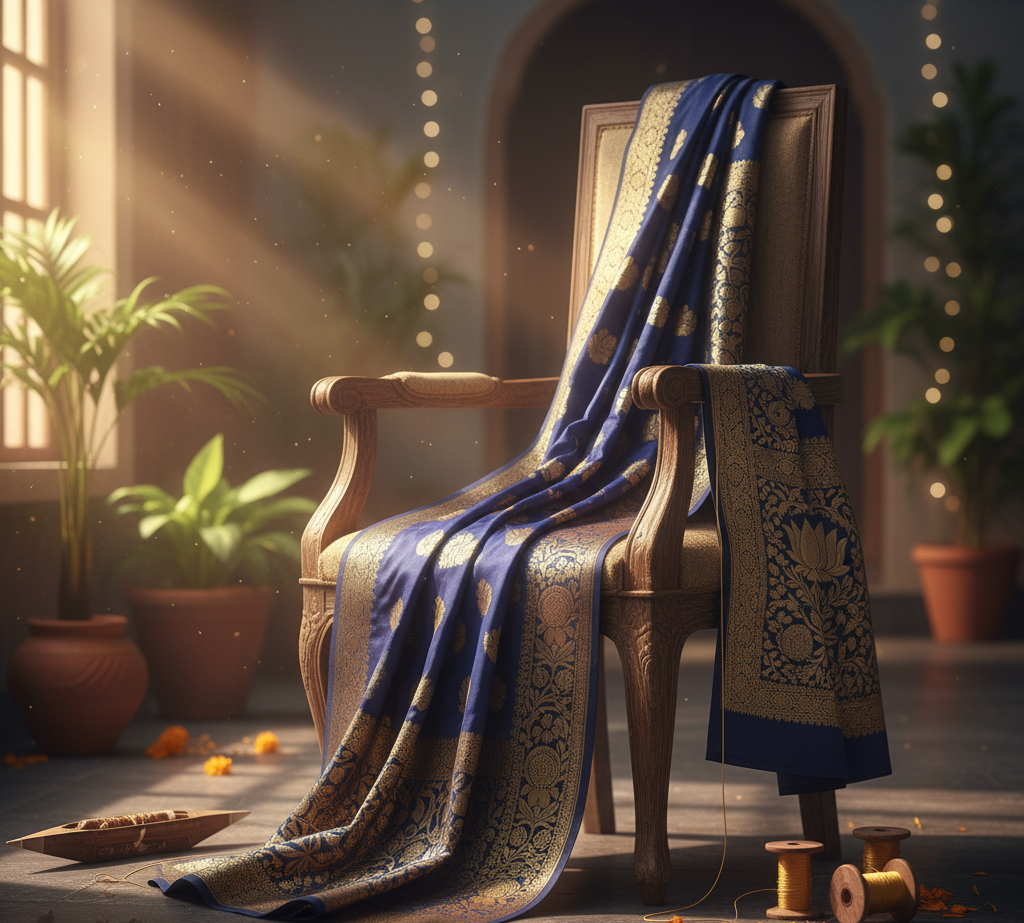 Our elegant Banarasi Handloom Pure Silk tradition with modernity, ensuring you radiate grace in every moment.