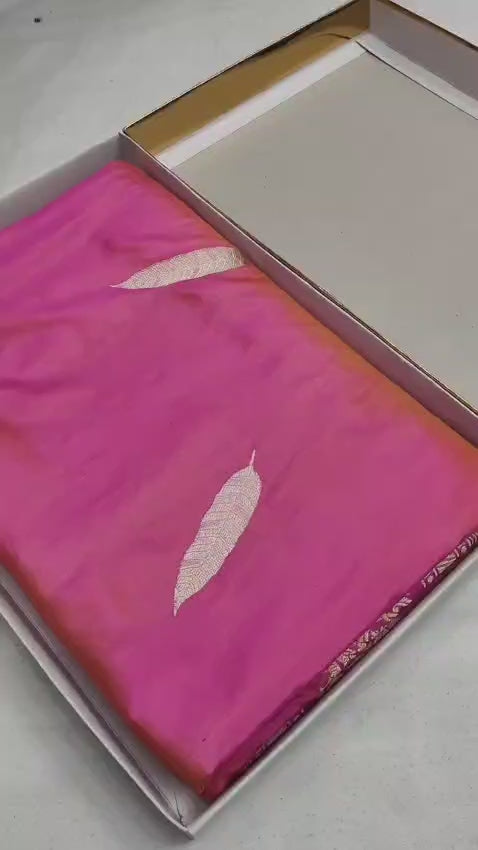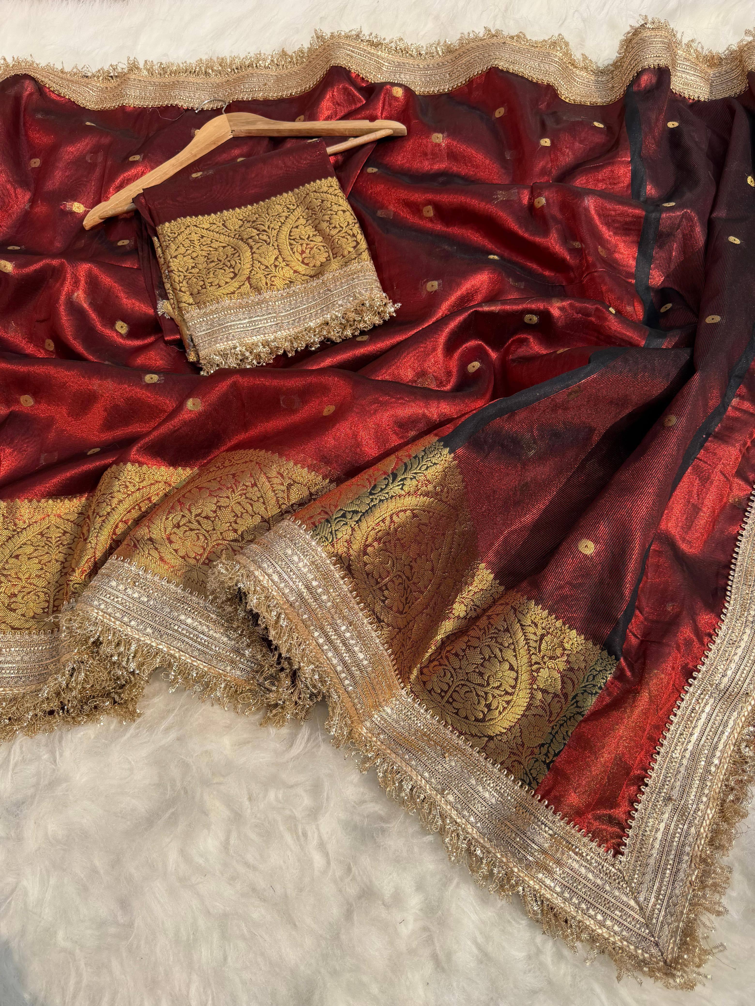Pure banarasi crushed tissue silk saree with scallop hand embroidery border