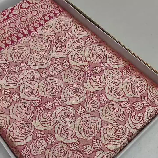 Banarasi Handloom Pure Katan Silk Saree – Gulab 🌹